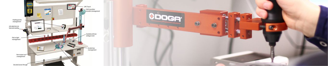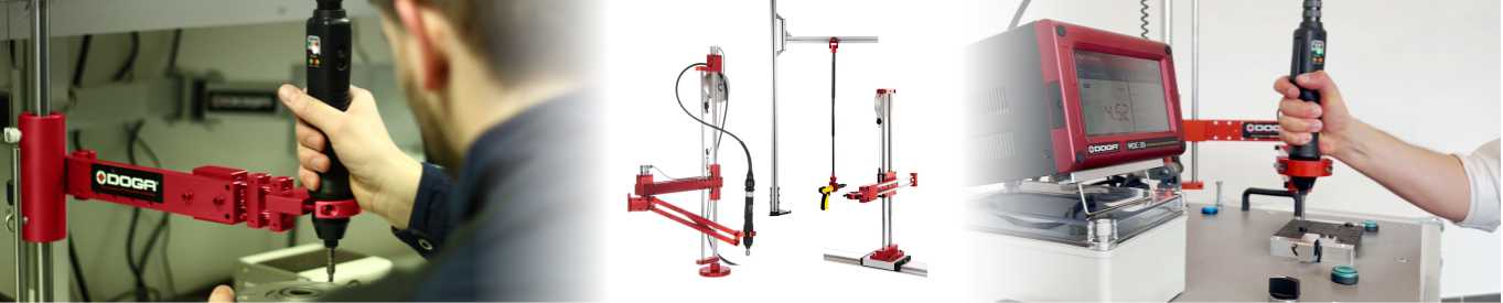 Powstała w 1946 we Francji firma DOGA zajmuje się produkcją znanych i sprawdzonych systemów nośnych oraz reakcyjnych do narzędzi montażowych i urządzeń na liniach produkcyjnych. Produkty tej firmy cechują innowacyjność, niezawodność i doskonałe parametry techniczne. Oferowane przez nas wkrętarki elektryczne lub narzędzia stosowane przez klienta podłączone mogą zostać pod ramiona reakcyjne DOGA z nowoczesnym systemem pozycjonowania, co pozwala na weryfikację położenia narzędzia oraz kolejności dokręcania. Możliwe jest również wykonywanie kompletnych pantografów lub manipulatorów na bazie projektów indywidualnych.