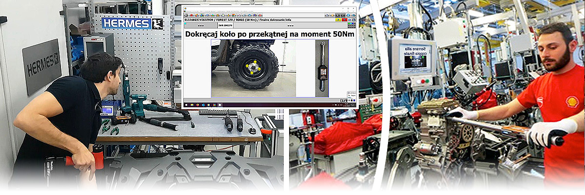 Proces montażu może być poddany wizualizacji produkcji, nadzorowany i kontrolowany poprzez dostarczone przez nas oprogramowanie SCS VPG+, przeznaczone do prowadzenia operatorów w celu wykonania operacji dokręcania i innych powiązanych z procesem montażu za pomocą komunikatów, w tym graficznych, wyświetlanych na panelach operatorskich. Dzięki komunikacji poprzez protokół otwarty, program SCS VPG+ jest w stanie zarządzać wieloma dostępnymi na rynku przemysłowymi narzędziami dokręcającymi (m.in. AMT, CLECO, ATLAS COPCO, STANLEY). Dodatkowo każdy proces może odbywać się z kontrolą pozycji narzędzia, co w połączeniu z oprogramowaniem SCS VPG+, tworzy niezawodny proces montażu w myśl metody Poka-Yoke. Posiadamy również inne, dedykowane dla konkretnych narzędzi i systemów oprogramowania do wizualizacji produkcji i kontroli poprawności wykonywanych operacji.
