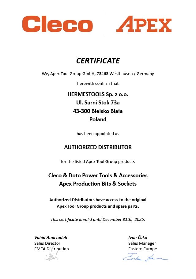 Więcej informacji w załączonych materiałach oraz na stronie producenta >> CLECO. Firma HERMESTOOLS jest oficjalnym dystrybutorem produktów CLECO w Polsce >> autoryzacja.