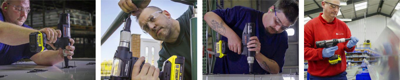 Nitownice akumulatorowe do montażu nitów zrywalnych (zakres od 2.4 - 6.4 mm), które posiadamy w swojej ofercie (POP/AVDEL PB2500 i PB3400 oraz LOBSTER R1B1 i R1B2) sÄ… wydajne, lekkie, wyposażone w akumulator litowo-jonowy i silnik bezszczotkowy. Idealnie sprawdzajÄ… siÄ™ do aplikacji, gdzie wymagana jest mobilność oraz ergonomia. DodatkowÄ… zaletÄ… tego rozwiÄ…zania jest wyeliminowanie zasilania pneumatycznego, co przyczynia siÄ™ do redukcji kosztów, haÅ‚asu, a także poprawy bezpieczeÅ„stwa, ergonomii pracy i zwiÄ™kszenie mobilnoÅ›ci użytkowania.