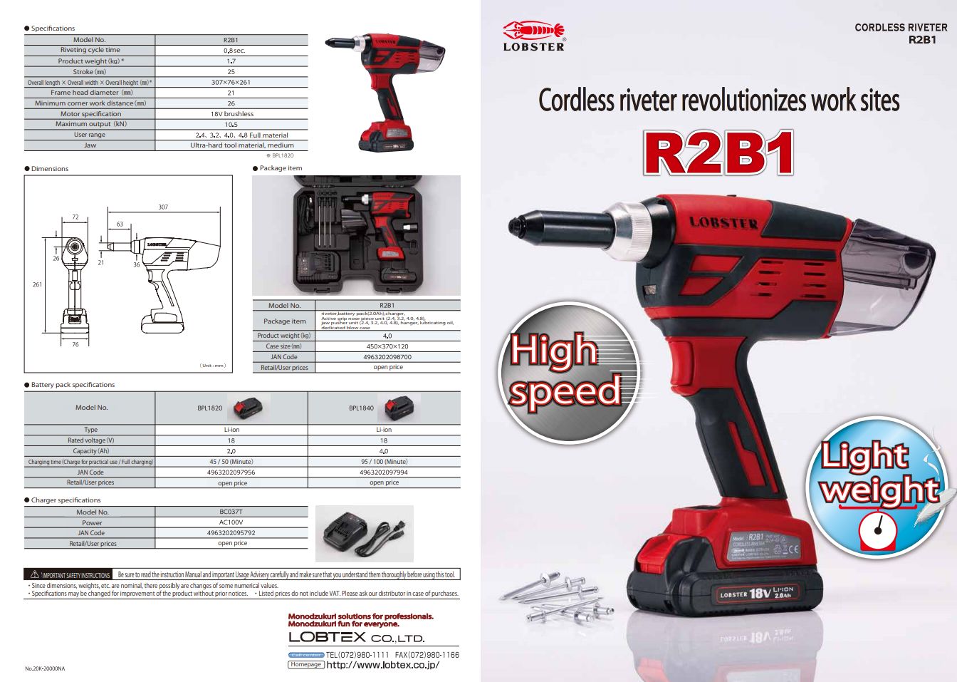 LOBSTER -nowa nitownica R2B1 (20/10/2020) Firma LOBSTER wprowadziła do swojej oferty nowy model nitownicy: R2B1. Cechuje ją zmniejszona waga narzędzia, większa prędkość pracy oraz zwiększony skok. Więcej szczegółów w załączonej ulotce.