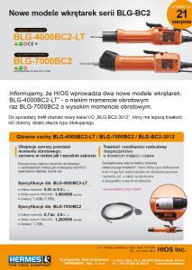 21 sierpnia, firma HIOS wprowadza do swojej oferty nowy model wkrętarki o niskim momencie „BLG-4000BC2-LT” oraz model „BLG-7000BC2” o wysokim momencie. Wprowadza również nowy kabel WE./WYJ „BLG-BC2-3012” o zwiększonej trwałości.